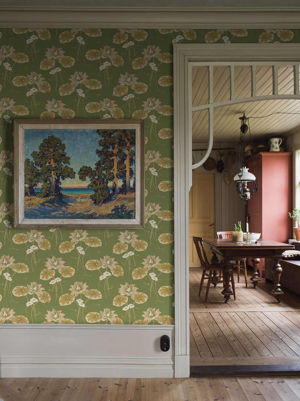 The Alla Tiders Hus wallpaper collection is a celebration of beautiful homes through the ages. It features designs inspired by six different periods of the 20th century – from the late 19th century to the present day. Some patterns are taken directly from archival originals, others are newly created, always with a deep respect for the era they represent.