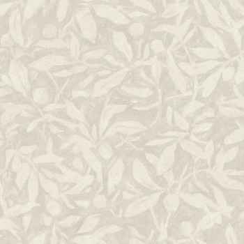 Non-woven wallpaper for the wall, leaf motifs in grey-beige shades.