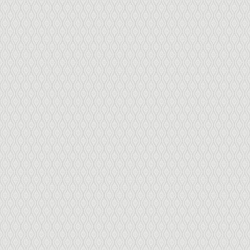 Non-woven wallpaper with a romantic pattern in soft shades of grey and white, with wavy floral design.