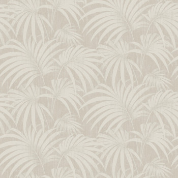 Non-woven wallpaper with a palm leaf pattern in muted beige tones.