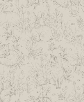 Wallpaper, grey-beige, animals, 6922, Newbie Wallpaper, Boråstapeter