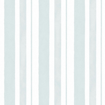 Non-woven wallpaper for walls, stripes in pastel blue / blue-green and white tones.