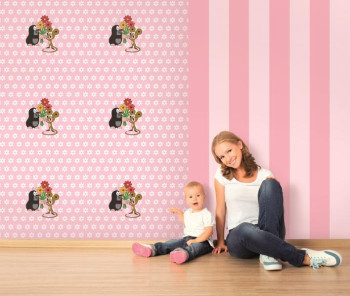 Stripes in pink shades on a wallpaper for wall, Little Mole collection, Vavex. Combinable with borders and other patterns from the collection.