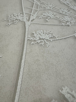Wallpaper, pattern of blooming meadow grasses in cream and white shades – embossed texture.