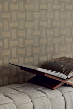Wallpaper, imitation of decorative natural square paneling, fine texture, in beige tones.
