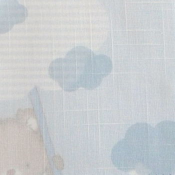 Treboli decorative voile, combinable with Treboli collection´s wallpapers. Blue clouds on a white background.