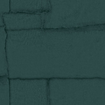 Luxury wallpaper with a vinyl surface, irregular stone cladding design in shades of dark turquoise / petrol.