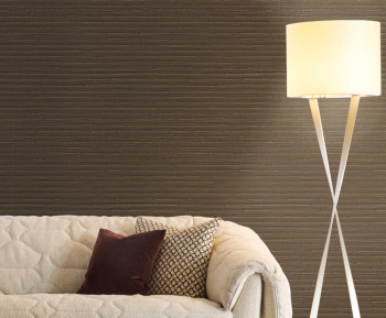 Luxury wallpaper with a vinyl surface, semi-gloss texture in brown tones with narrow metallic bronze stripes.
