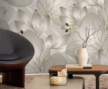 Luxury wall mural with a vinyl surface, striking leaf and floral pattern.