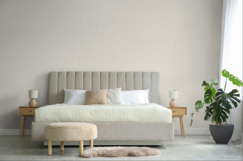 Non-woven wallpaper with vinyl surface, ivory colour, subtle semi-gloss in places, coarse striped texture.