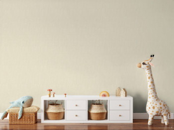 Non-woven wallpaper with vinyl surface, cream shades, subtle semi-gloss in places, coarse striped texture.