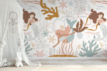 Children's non-woven photo wallpaper, underwater world with mermaids.
