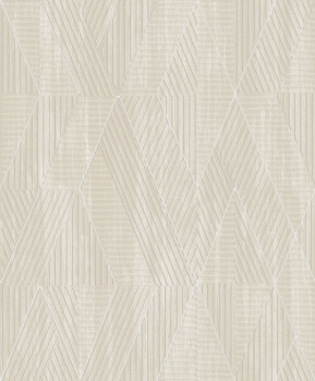 Wallpaper with a striking geometric pattern in brick red shades and beige lines, subtle texture, semi-gloss vintage effect.