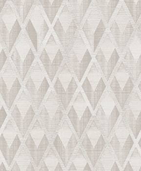 Wallpaper with a geometric pattern in shades of cream and beige.