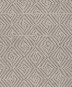 Wallpaper with an irregular geometric pattern in shades of brown and beige.