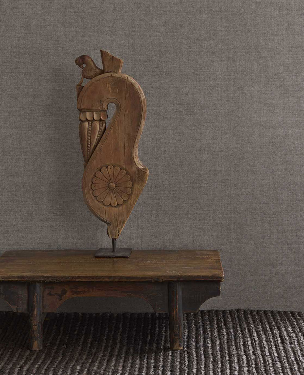 Non-woven wallpaper with vinyl surface, fabric texture in brown tones.