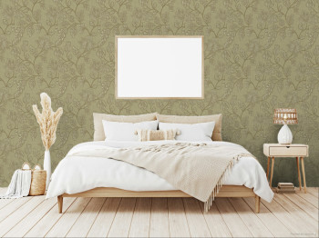 Non-woven wallpaper with textile texture, ornamental floral pattern in shades of brown and beige.