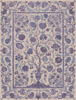 Non-woven mural wallpaper, blooming “tree of life” motif, shades of blue, grey background.