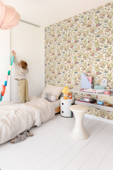 In addition to patterned wallpapers, the collection also offers plain options with a linen-effect texture, which perfectly complement the motifs and allow you to harmonise the room down to the last detail.