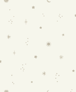 Kids non-woven wallpaper, white background, star motifs, granular texture.