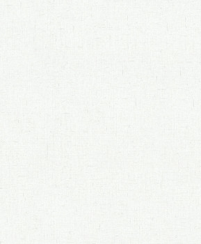 Non-woven wallpaper with a vinyl surface, white fabric texture with metallic accents.