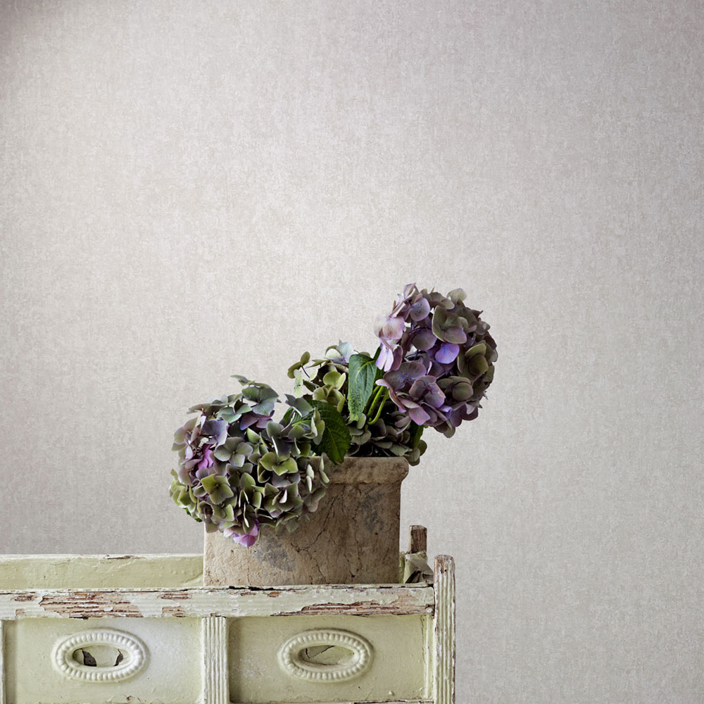 Non-woven wallpaper with a vinyl surface, grey-white plaster finish design, fine texture.