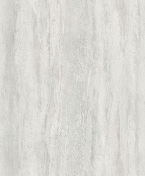 Non-woven wallpaper with a vinyl surface, grey and grey-cream plaster finish design with metallic embossing, fine texture.