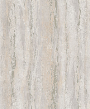 Non-woven wallpaper with a vinyl surface, beige-pink plaster finish design with metallic golden embossing, fine texture.