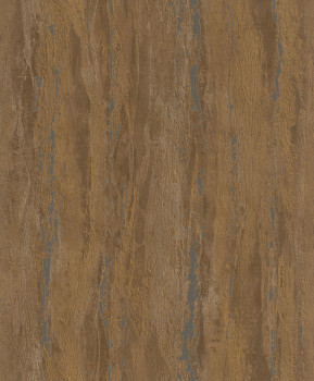 Non-woven wallpaper with a vinyl surface, brown plaster finish design with metallic embossing, fine texture.