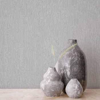 Wallpaper with a vinyl surface, vertical texture inspired by wood grain in shades of grey.