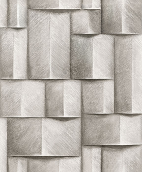 Wallpaper with a vinyl surface, fine texture, graphic pattern with shading creating a 3D effect in grey tones.