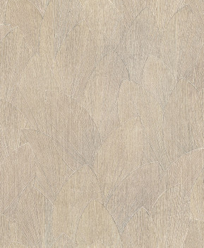 Wallpaper with a vinyl surface, striped texture with leaf outlines in beige and grey-beige tones.