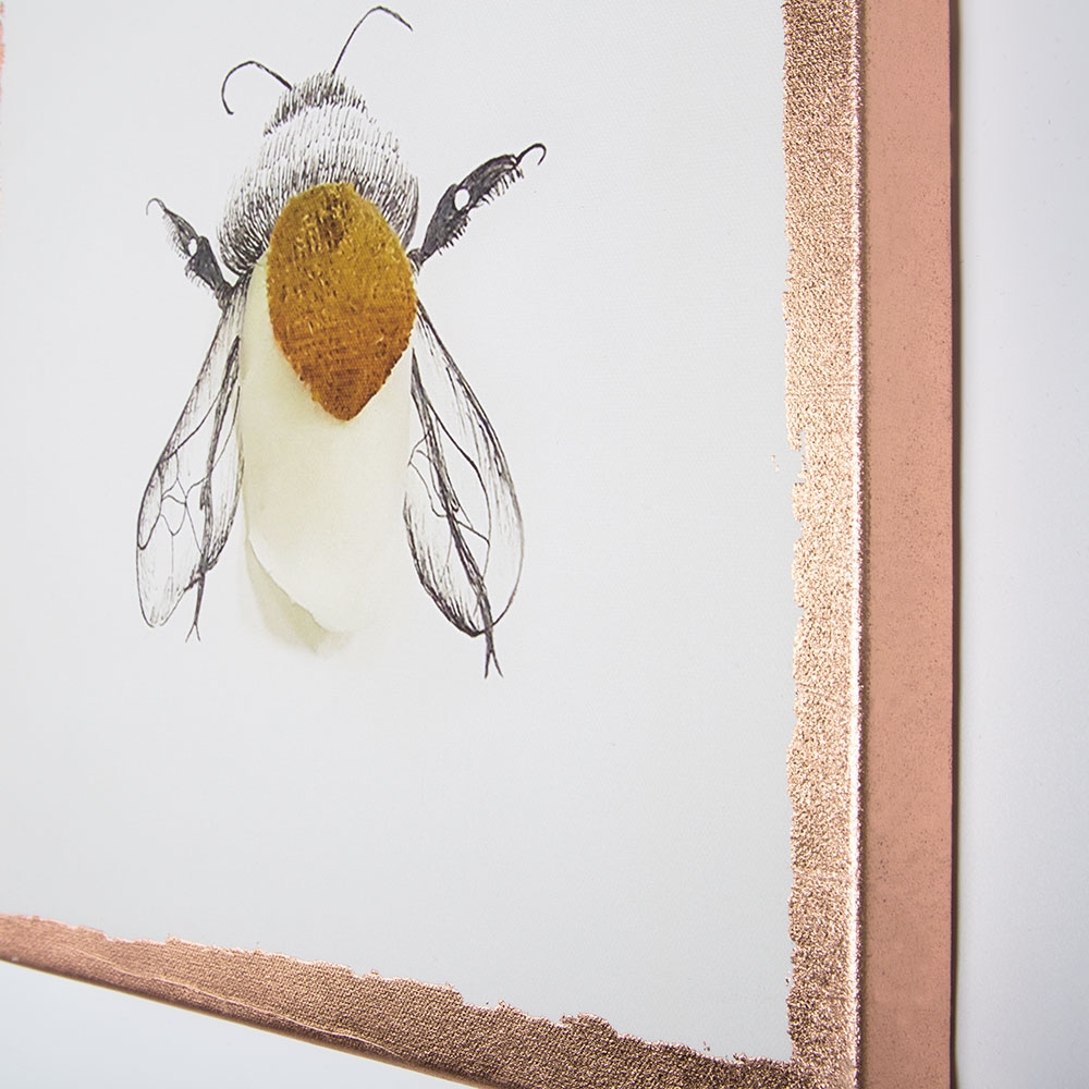 Printed canvas, unique design, accentuated frame in a metallic luster.