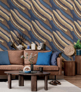 Wallpaper, brown-blue, fabric effect, 2029, Rio, Parato by Cristiana Masi