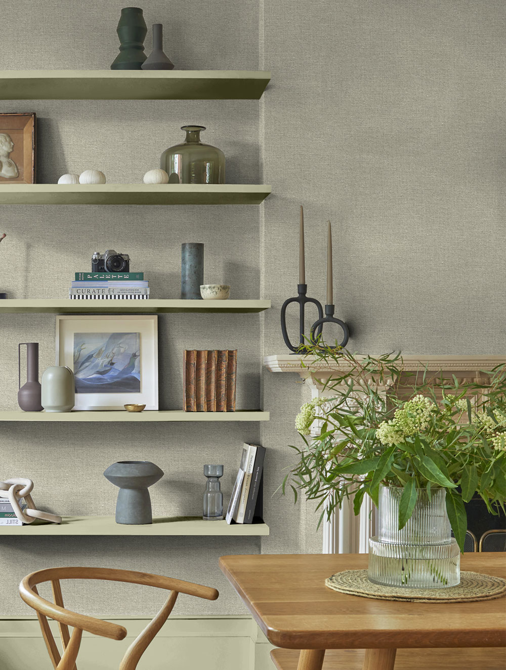 Wallpaper, beige-green, fabric effect, 143253, Jaipur, Graham Brown Premium