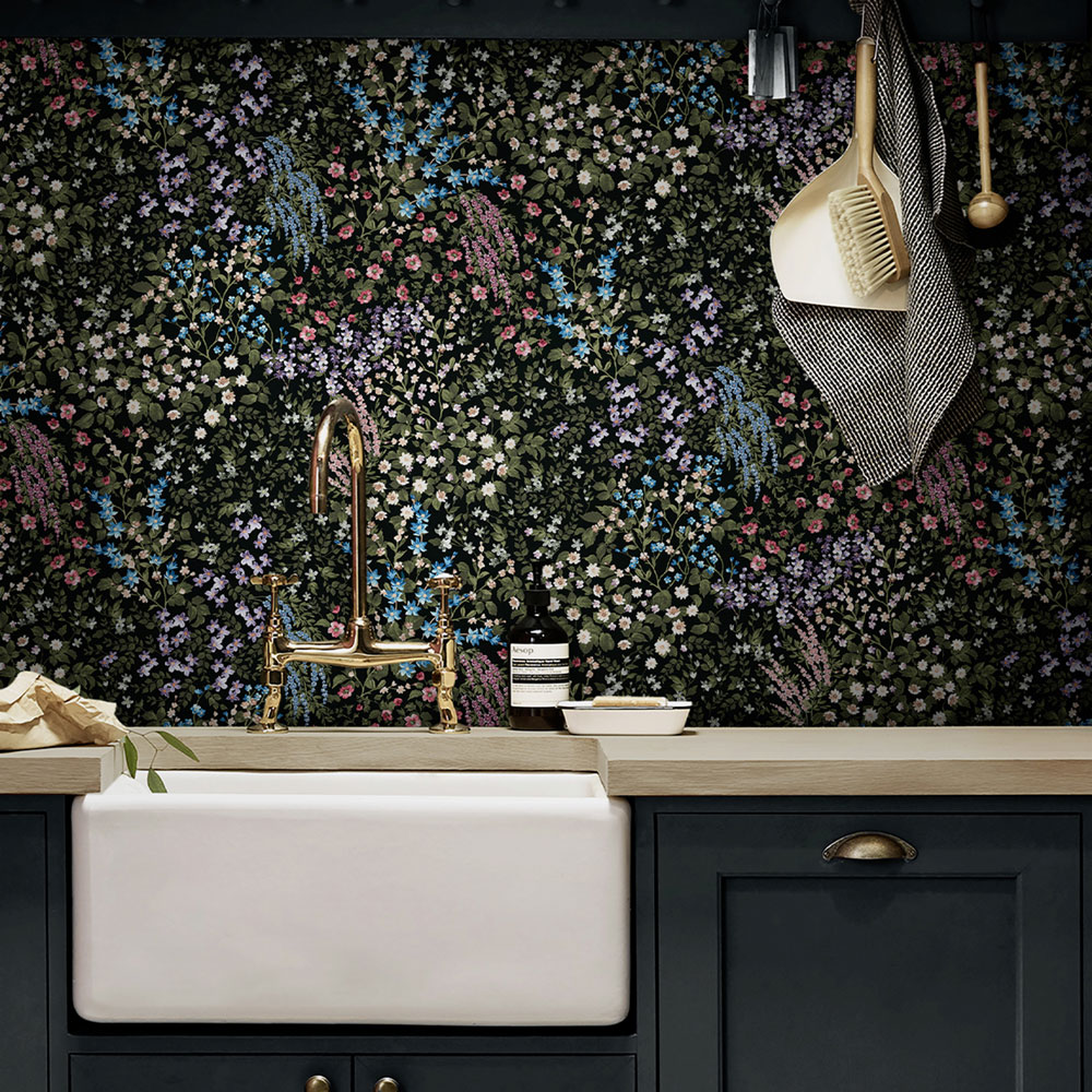 You will find striking floral patterns, ranging from tiny blossoms on dark backgrounds that feel bold, elegant, and slightly seductive, to softer variations on light backgrounds. A beautiful feature is the branches of peach trees and other fruit trees, full of blossoms and fruit, adding a sense of naturalness, freshness, and a romantic atmosphere to the wallpapers.