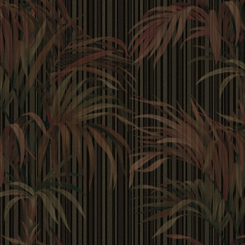 Wallpaper, black, brown, stripes, leaves, Z81014, Philipp Plein 2, Zambaiti Parati