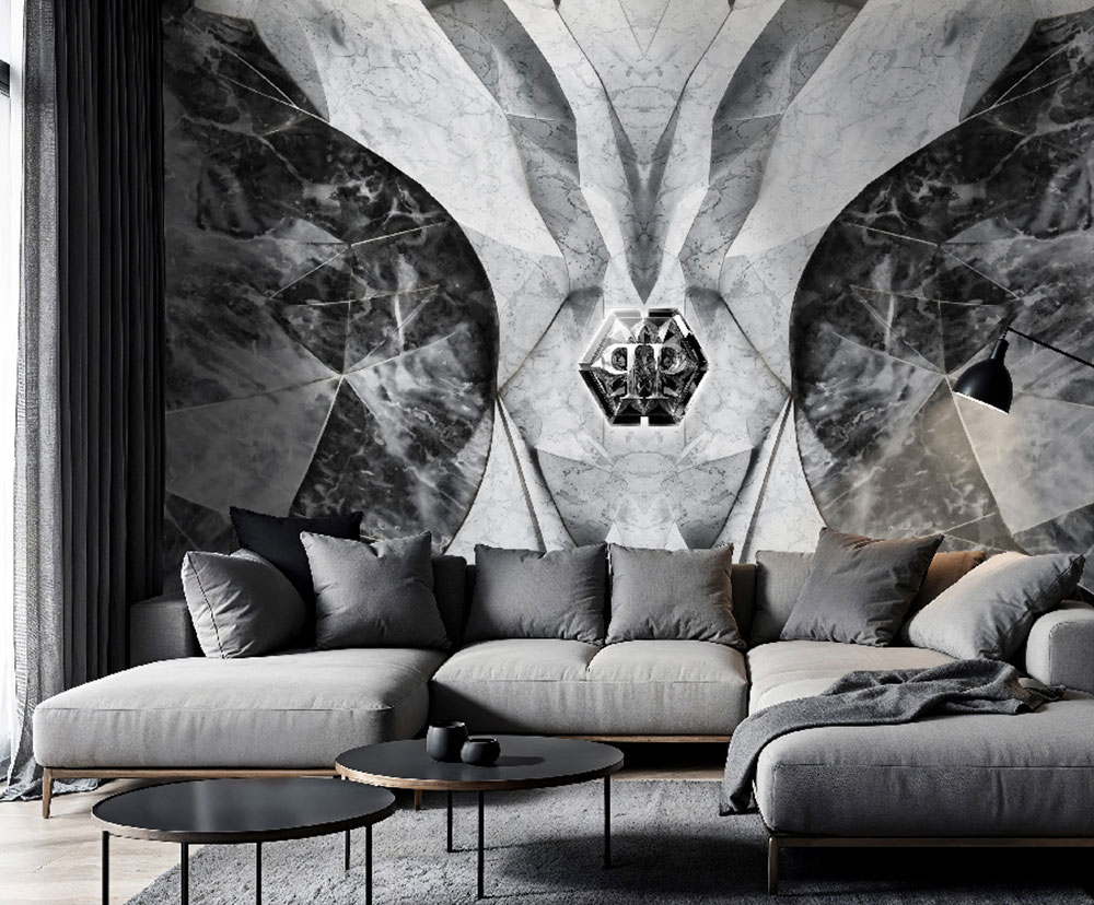 Wall mural, black, grey, marble, shapes, logo, Z81067, 3x3 m, Philipp Plein 2, Zambaiti Parati