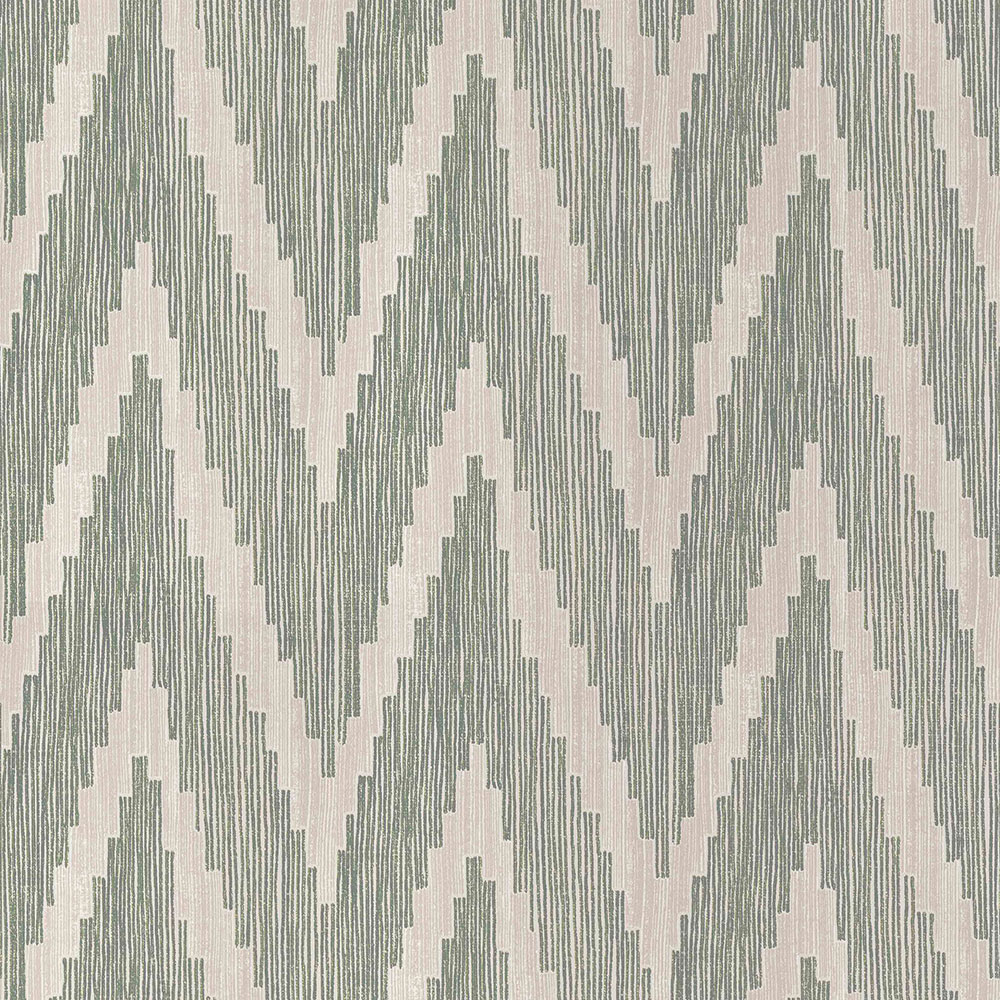 Non-woven green-beige wallpaper with a geometric pattern.