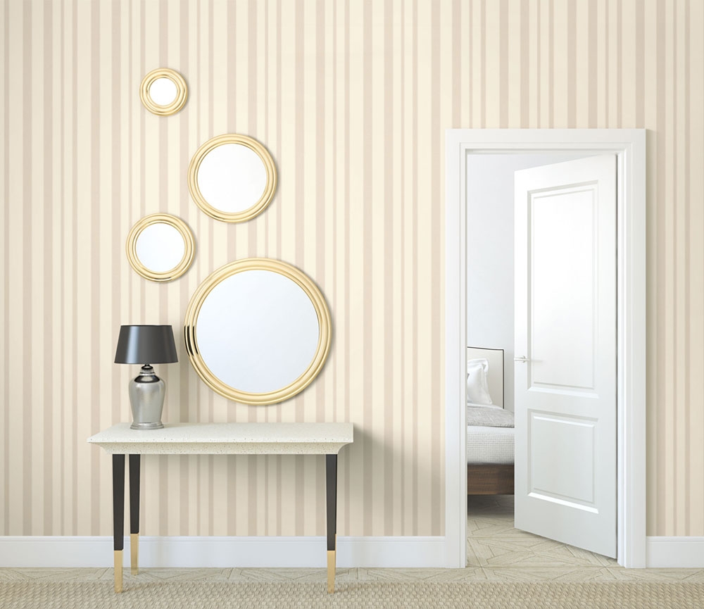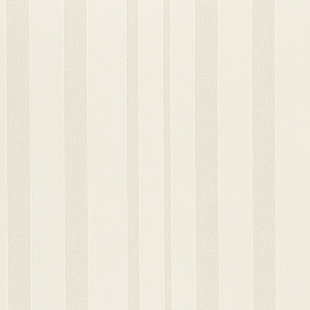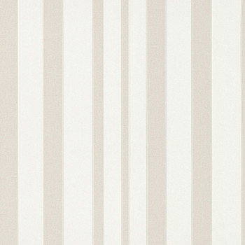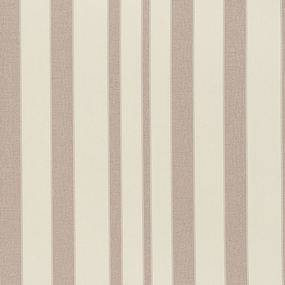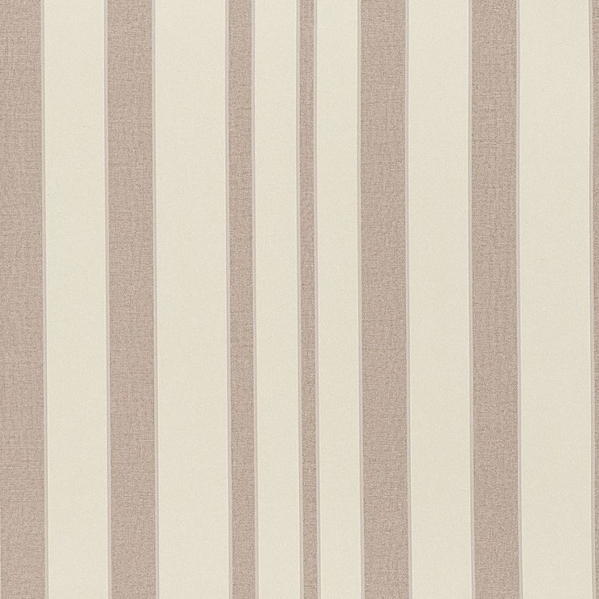 Luxury vinyl wallpaper with stripes in shades of cream, brown, narrow silver stripe.