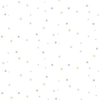 Smooth non-woven wallpaper, white background, with blue, gold, and gray stars measuring 0.5 and 1 cm.
