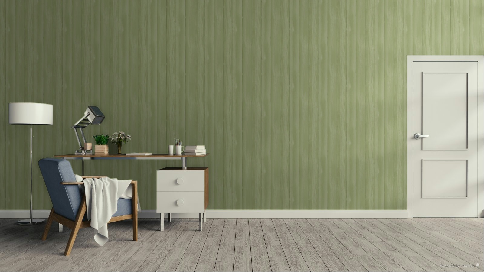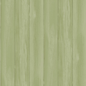 Smooth green non-woven wallpaper; the pattern creates the effect of 8-cm-wide wooden planks.