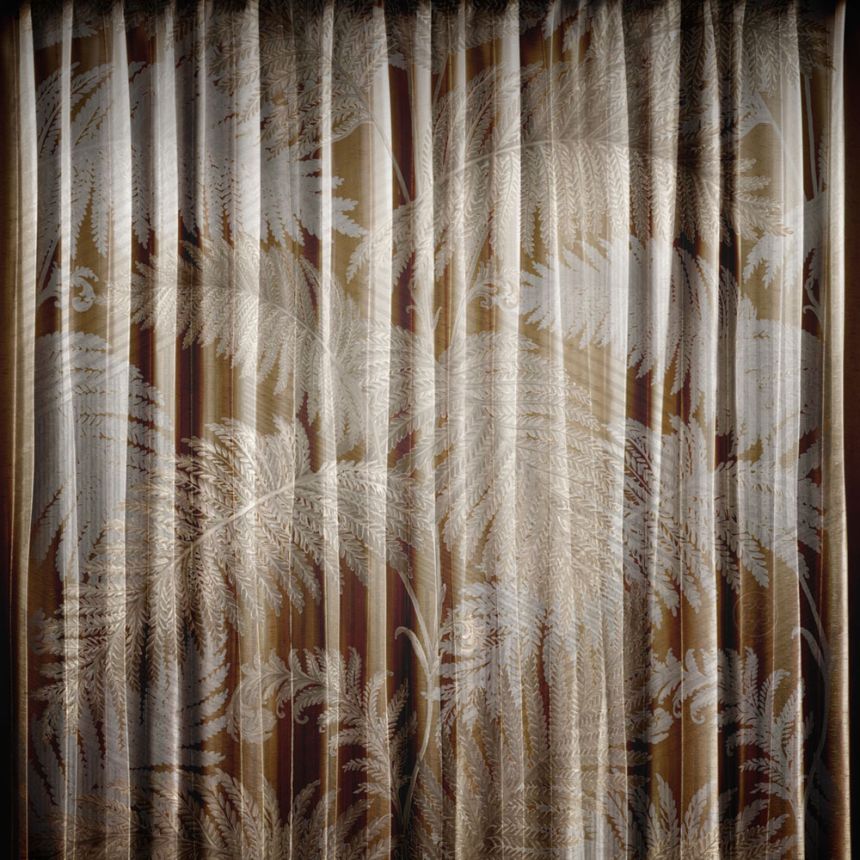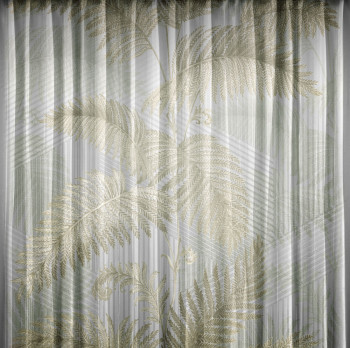 Luxury non-woven 3-piece decorative wallpaper mural with a pattern of tree leaves on a background with a pattern of a wavy fabric. The wallpaper is in brown-beige shades. Can be combined with pattern Z64863