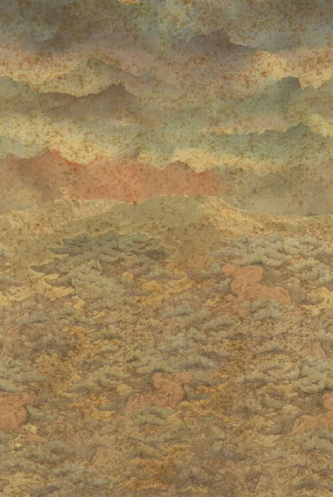 Luxury non-woven 2-piece decorative wallpaper mural in brown-ocher shades in the style of a Japanese garden. Can be combined with pattern Z64894
