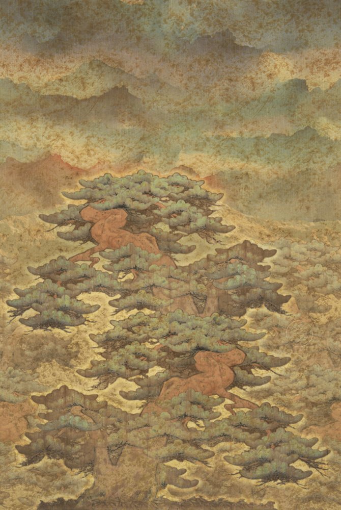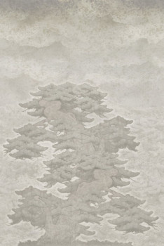 Luxury non-woven 2-piece decorative wallpaper mural in brown-ocher shades - bonsai in a Japanese garden. Can be combined with pattern Z64895