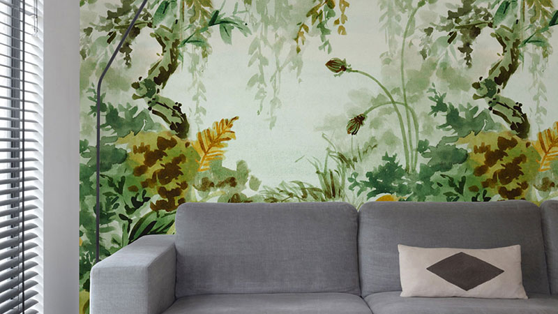 Each mural wallpaper consists of three panels measuring 159 × 280 cm and looks like a true piece of art. You'll find tropical forests, palms, flowers, birch woods, space scenes – and playful illustrations perfect for children’s rooms.