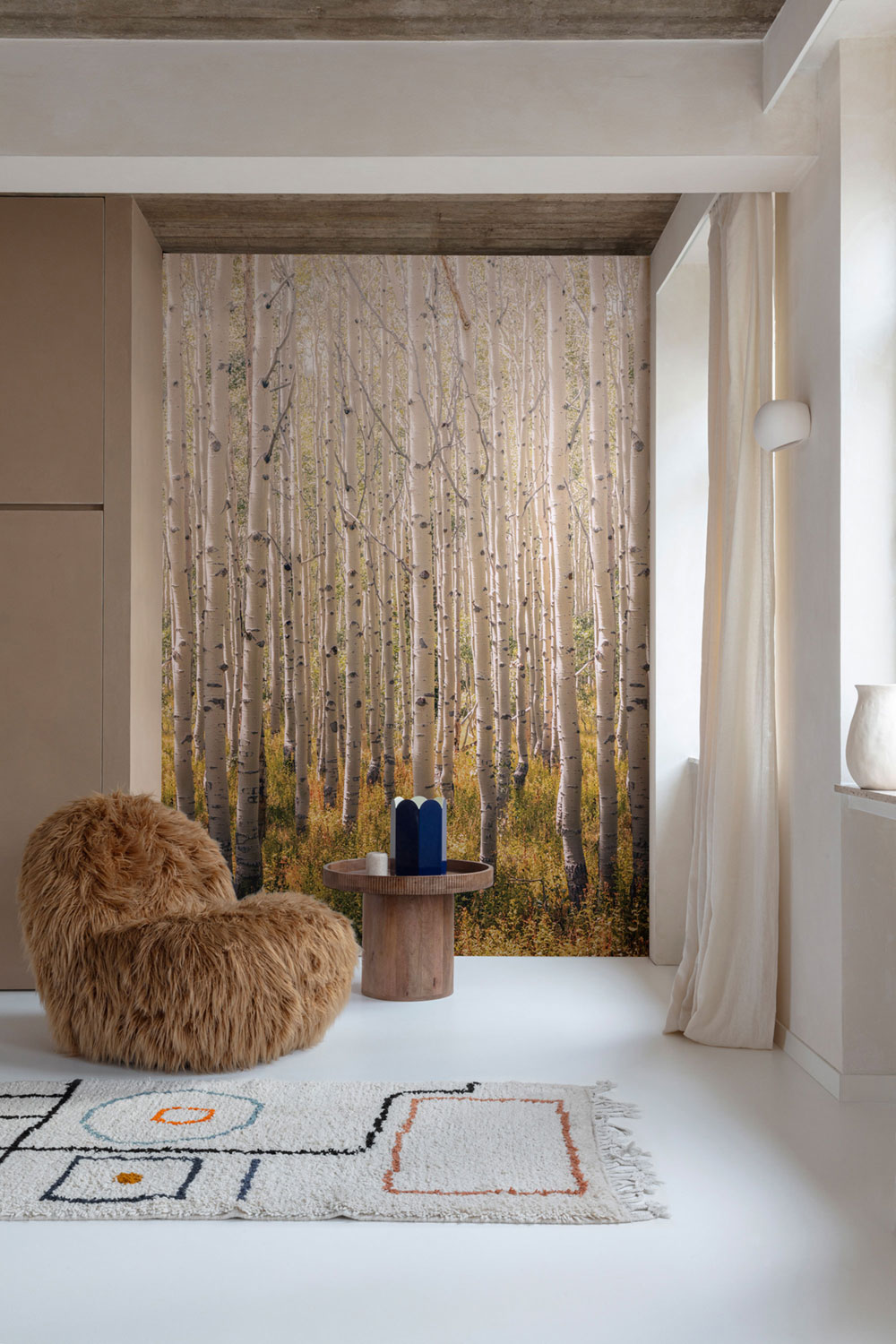 Non-woven mural wallpaper – bring the peaceful atmosphere of a birch grove into your interior.