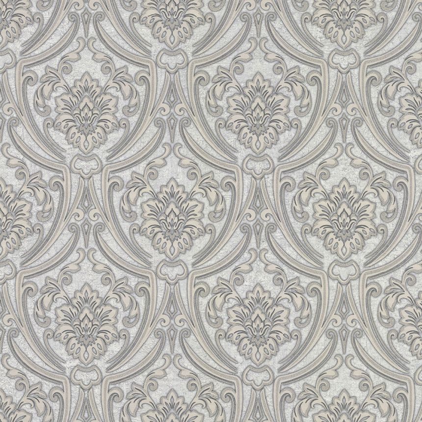 Beige luxury baroque wallpaper with a distinctive silver-grey pattern will add a unique look to any interior.