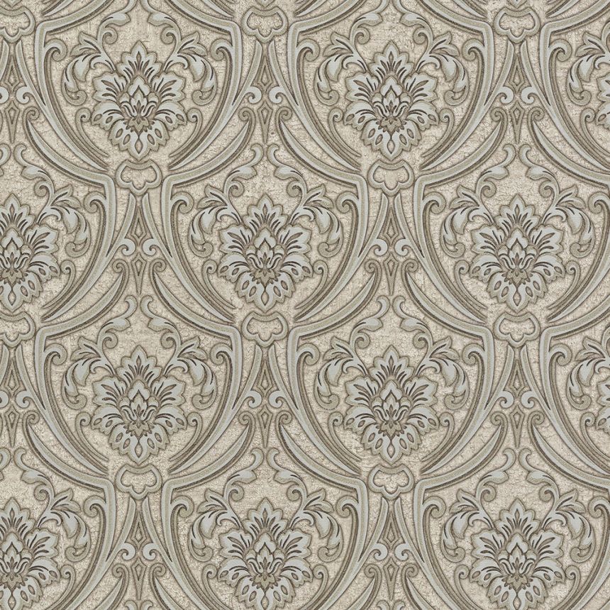 Beige luxury baroque wallpaper with a distinctive brown, grey and gold pattern will add a unique look to any interior.