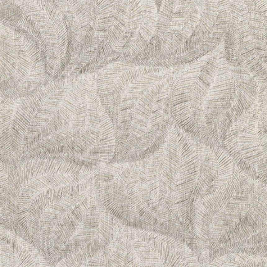 Non-woven wallpaper, a pattern of stylized leaves in shades of cream and gray-brown with metallic gold and silver details. Wallpaper is suitable for bedroom, living room or study.